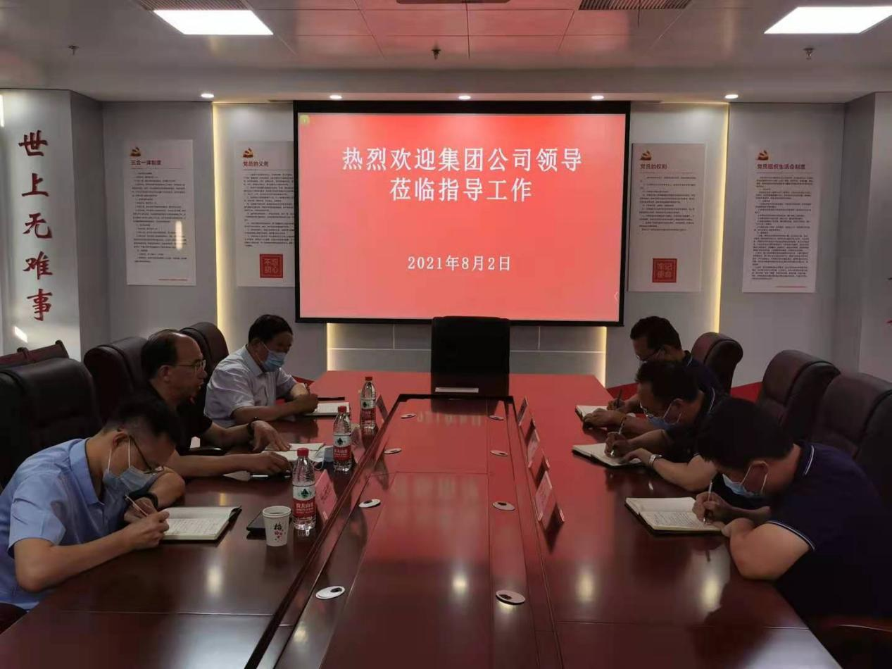 為深入貫徹落實(shí)7月29日市屬國資國企黨建工作推進(jìn)會議精神,8月2日,集團(tuán)公司黨委書記、董事長徐文芹,黨委副書記郭菏玉一行到公司調(diào)研指導(dǎo)黨建工作。公司總經(jīng)理、黨支部書記朱瑞,副總經(jīng)理徐承凱、吳慶月陪同調(diào)研。