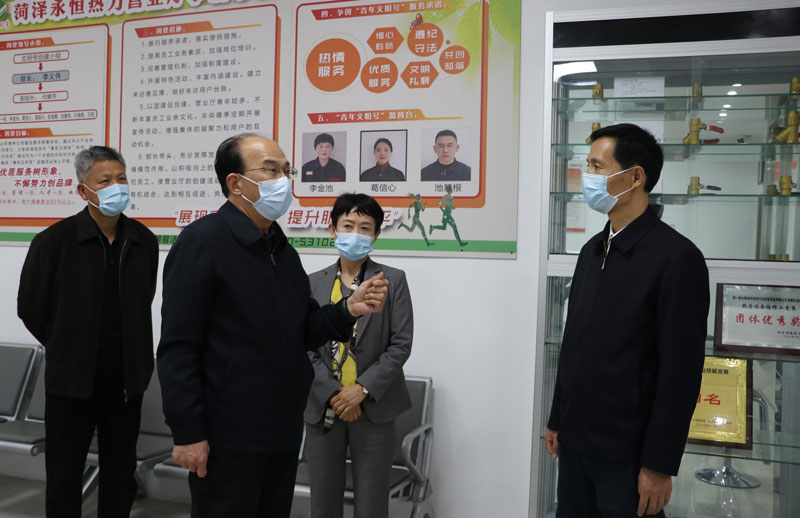 張市長一行人走進(jìn)菏澤發(fā)電廠供熱首站,實(shí)地查看供暖設(shè)備運(yùn)行狀況,仔細(xì)詢問集中供熱工作準(zhǔn)備情況。隨后,在永恒熱力公司服務(wù)大廳仔細(xì)查看了價(jià)格(收費(fèi))公示表,認(rèn)真了解了永恒熱力公司“青年文明號(hào)”創(chuàng)建、網(wǎng)上繳費(fèi)辦理等情況。菏投集團(tuán)黨委書記、董事長徐文芹就服務(wù)大廳功能、供熱前期準(zhǔn)備、公司運(yùn)營狀況等,向調(diào)研人員做詳細(xì)說明。