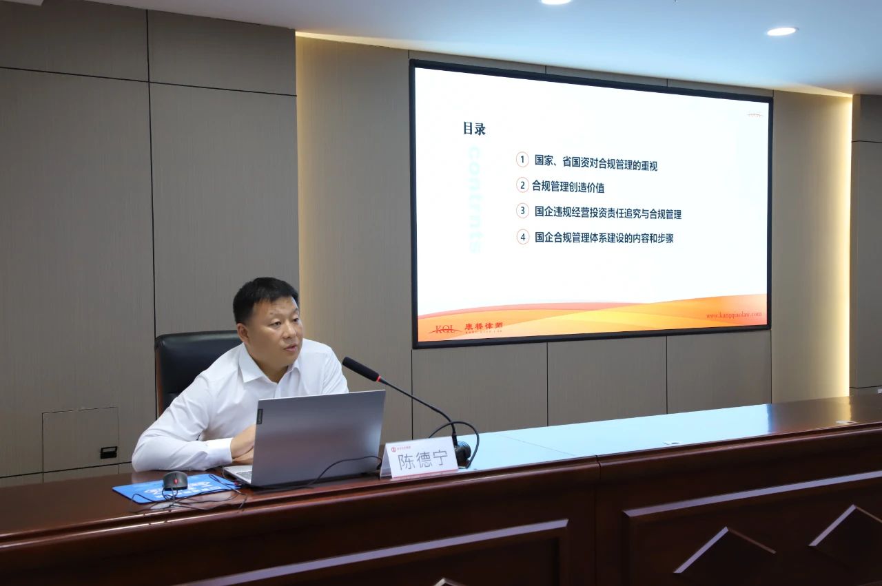 會上,陳德寧律師以合規(guī)管理能實現(xiàn)“貼身保護”為題,從國家、省國資委對合規(guī)管理的重視、合規(guī)管理創(chuàng)造價值、國企違規(guī)經(jīng)營投資責(zé)任追究與合規(guī)管理、國企合規(guī)管理體系建設(shè)的內(nèi)容和步驟等四個方面,講授了一堂生動、有意義的合規(guī)管理講座。整個培訓(xùn)內(nèi)容十分豐富、政策性很強、案例詳實,且有警示和教育意義,充分調(diào)動了大家的學(xué)習(xí)熱情。