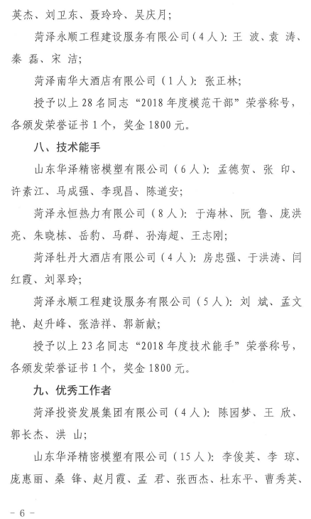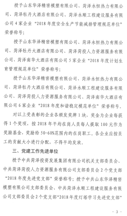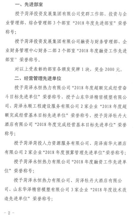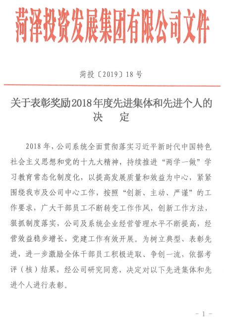 附:《關(guān)于表彰獎勵2018年度先進(jìn)集體和先進(jìn)個人的決定》(菏投〔2019〕18號)