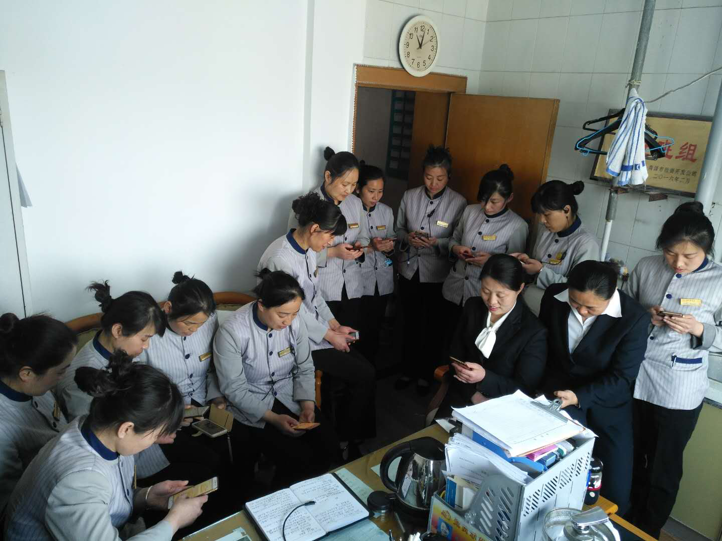 圖6:2019年1月31日,菏澤牡丹大酒店有限公司房務(wù)部辦公室,正在召開了部門會議,教員工如何使用“學(xué)習(xí)強(qiáng)國”APP,鼓勵員工把積累的學(xué)習(xí)經(jīng)驗(yàn)與身邊的同事分享,共同進(jìn)步。