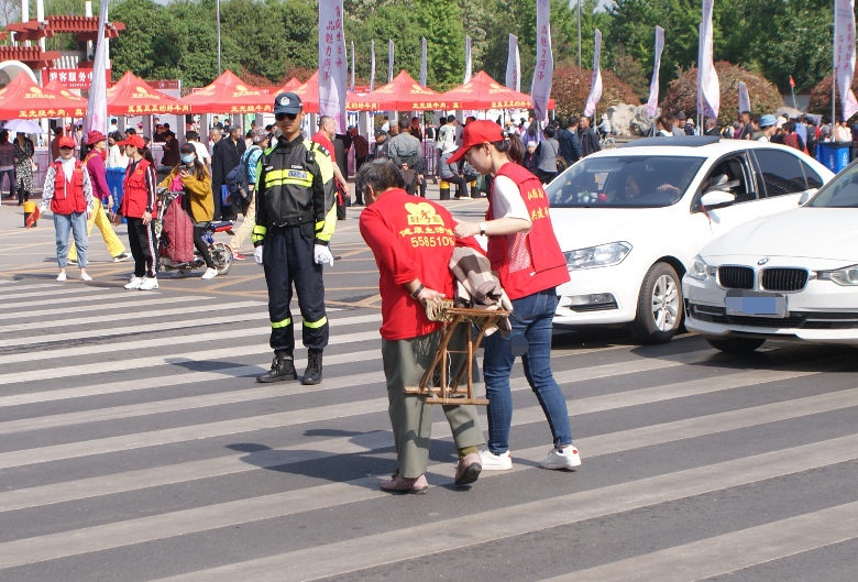 看到行動不便的老人,志愿者立馬上前攙扶,幫助過馬路