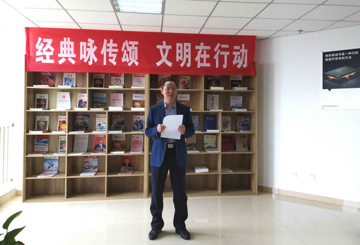 祝傳隨為讀書交流會(huì)致辭并提出要求和期望。他強(qiáng)調(diào),讀書是中華民族幾千年的優(yōu)良傳統(tǒng),讀書可以豐富我們的知識,陶冶我們的情操,啟迪我們的智慧。全民讀書能使中華文化煥發(fā)出更基本、更深沉、更持久的力量。希望小組辦公室能以本次讀書交流會(huì)作為開端,多在公司系統(tǒng)內(nèi)開展豐富多彩的讀書主題活動(dòng),教育引導(dǎo)廣大“多讀書、讀好書、會(huì)讀書”,提升員工文化素質(zhì)水平,建設(shè)學(xué)習(xí)型企業(yè)。他希望,公司文明單位創(chuàng)建和企業(yè)文化建設(shè)辦公室和各部室要加強(qiáng)交流、密切合作,繼續(xù)策劃開展好各類誦讀活動(dòng),不斷弘揚(yáng)中華優(yōu)秀傳統(tǒng)文化、弘揚(yáng)社會(huì)主義核心價(jià)值觀,營造濃厚的讀書和學(xué)習(xí)氛圍,建設(shè)具有凝聚力、向心力和創(chuàng)造力的企業(yè)文化,為公司實(shí)現(xiàn)高質(zhì)量發(fā)展提供強(qiáng)大動(dòng)力支持。