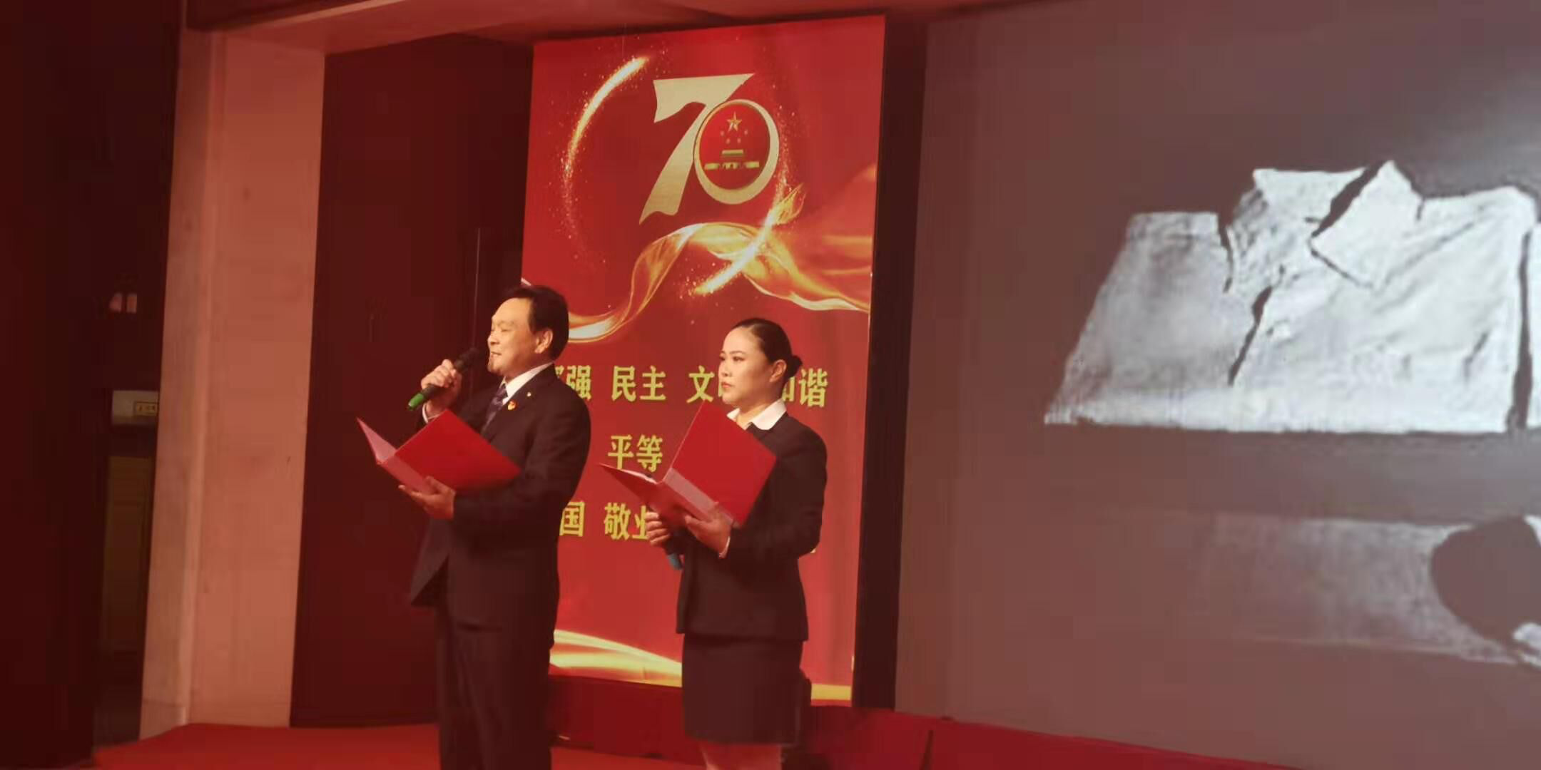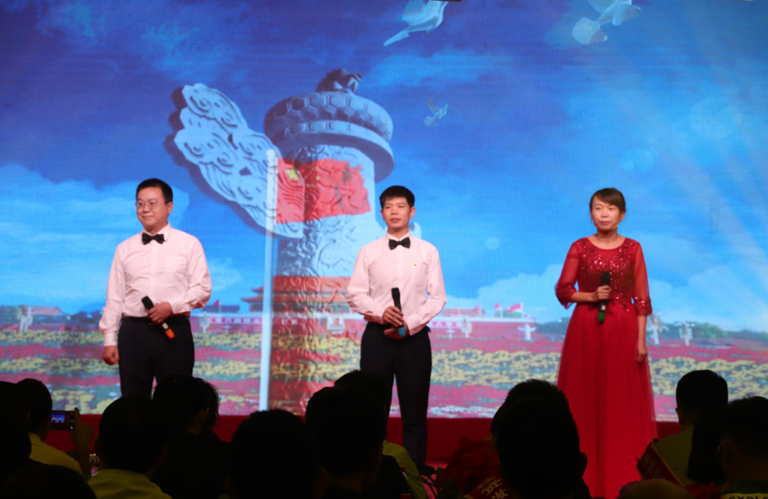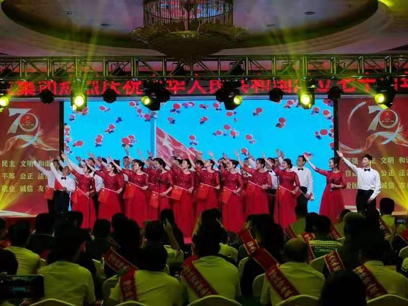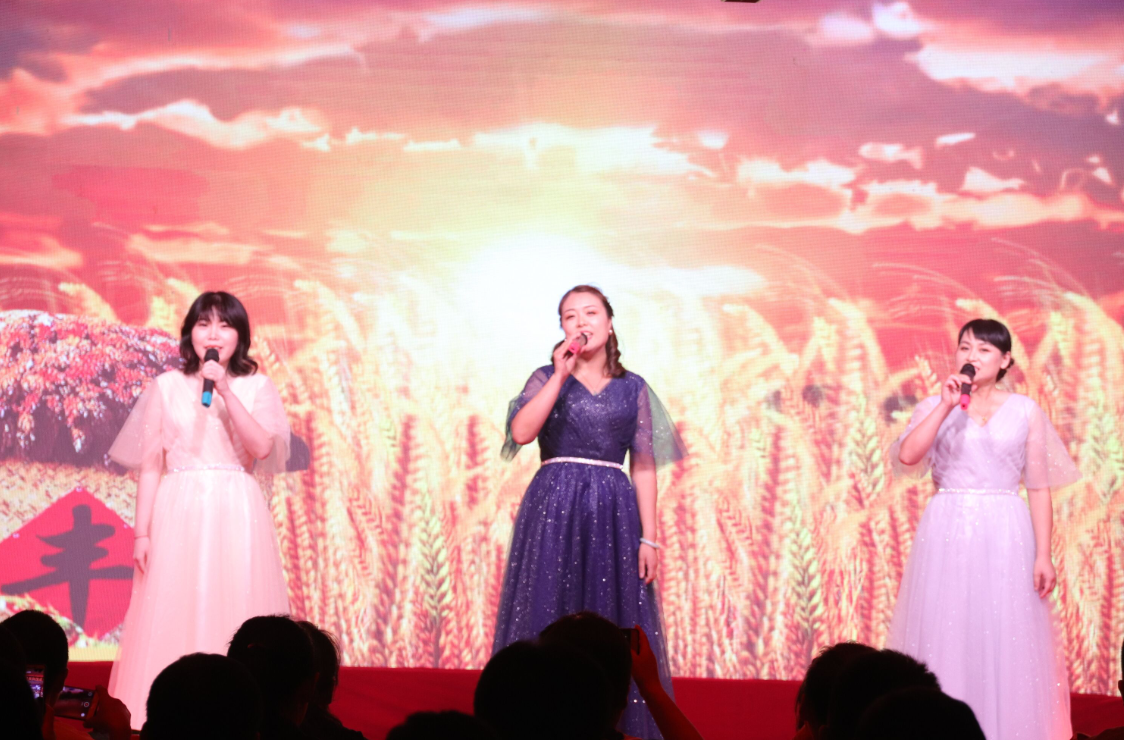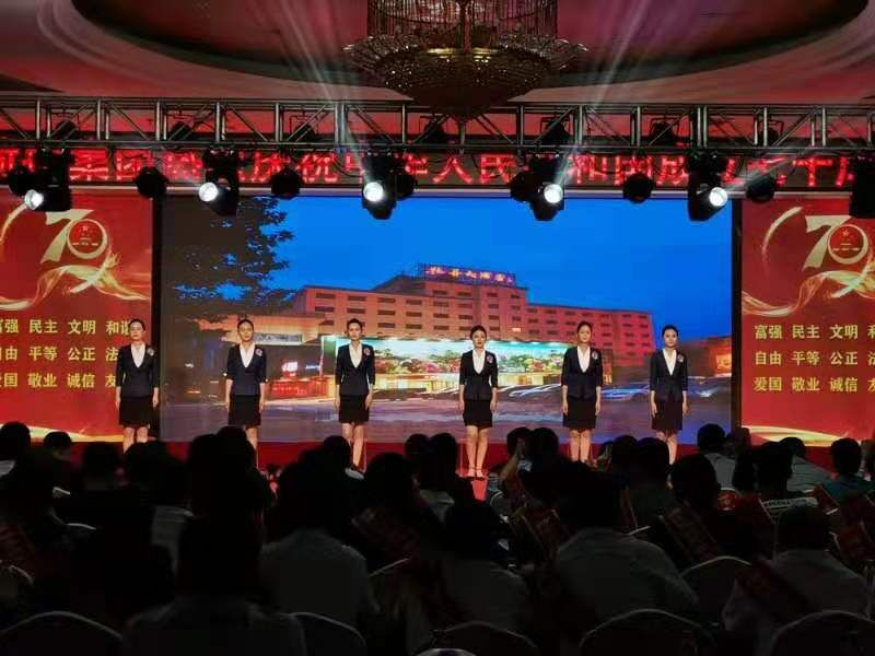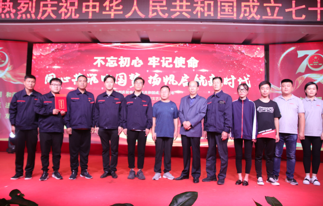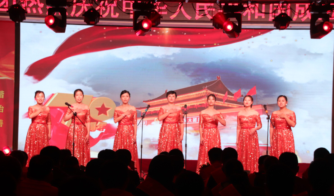 舞蹈《bar bar bar》 三句半《祖國頌》 小合唱《今天是你的生日》 歌曲《中國》 朗誦《中華頌》 歌曲《最美的歌兒唱給媽媽》 大合唱《歌唱祖國》 公司黨委書記、董事長徐文芹與演出人員合影
