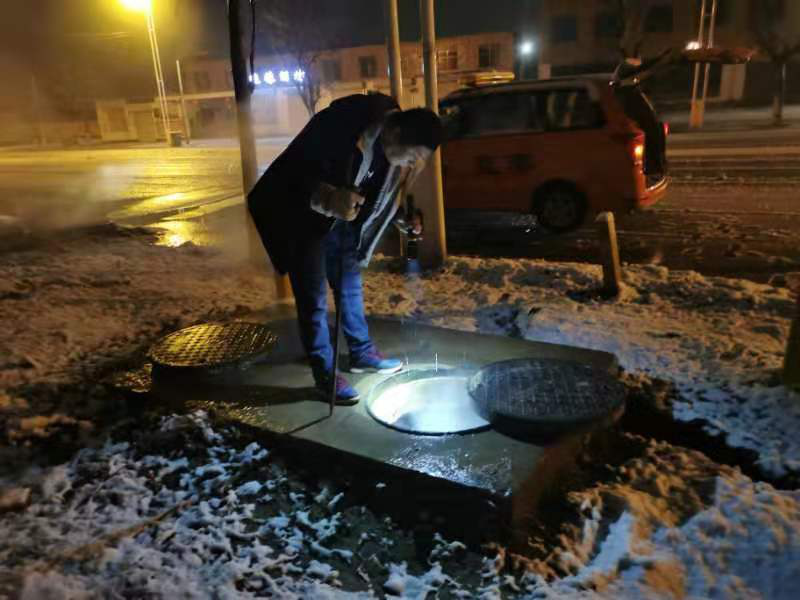 1月6日晚,永恒蒸汽公司的值班人員帶齊了發(fā)電機、抽水泵、鐵锨等工具出發(fā),把平時容易出問題的閥門井依次打開,對個別存在積水的井及時啟動發(fā)電機抽水,盡最大努力降低雨雪極端天氣的熱量損耗,排除安全隱患。