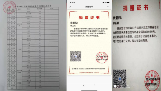 為避免人員聚集,募捐活動不實(shí)行人員集中捐贈,選擇運(yùn)用微信、支付寶、銀行轉(zhuǎn)賬的方式籌集抗疫資金。截至目前,募集資金計(jì)2200元整;另外,在2月2日前,永順工程公司黨支部于傳強(qiáng)、袁濤、田濤、王波、楊占威、郭新獻(xiàn)等同志先后以個人的名義主動向武漢市慈善總會進(jìn)行了捐贈。