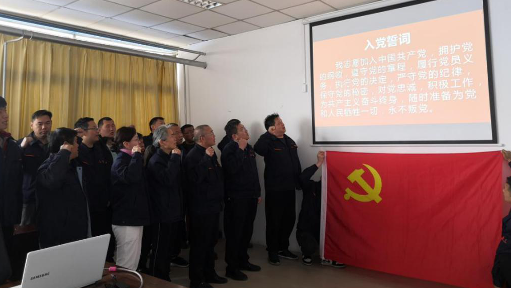 學(xué)習(xí)結(jié)束后,全體與會黨員佩戴黨徽,面向黨旗,在周立新書記的帶領(lǐng)下,共同重溫了入黨誓詞,同志們宣誓鏗鏘有力,表達了對黨的無限忠誠。
