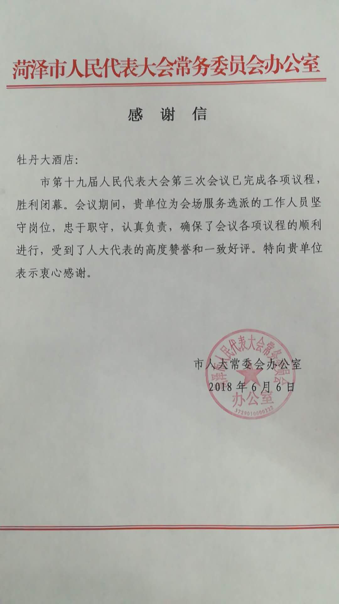 牡丹大酒店圓滿完成我市第十九屆人大會(huì)第三次會(huì)議接待工作