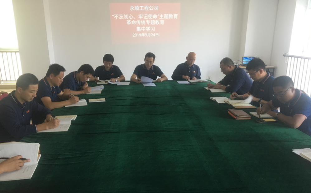 為扎實開展“不忘初心、牢記使命”主題教育,進(jìn)一步增強(qiáng)集中學(xué)習(xí)的針對性和實效性,9月24日下午,永順工程黨支部組織公司行政班子成員、支部全體黨員開展了革命傳統(tǒng)專題教育暨集中學(xué)習(xí)活動,集中觀看了影片《長征》,重溫那段波瀾壯闊的光輝歲月,傳承紅色基因;集中學(xué)習(xí)了《習(xí)近平關(guān)于“不忘初心、牢記使命”論述摘編》關(guān)于“中國共產(chǎn)黨人的初心和使命,就是為中國人民謀幸福,為中華民族謀復(fù)興”這一中心思想的專題論述,以習(xí)近平新時代中國特色社會主義思想涵養(yǎng)黨員的初心和使命。