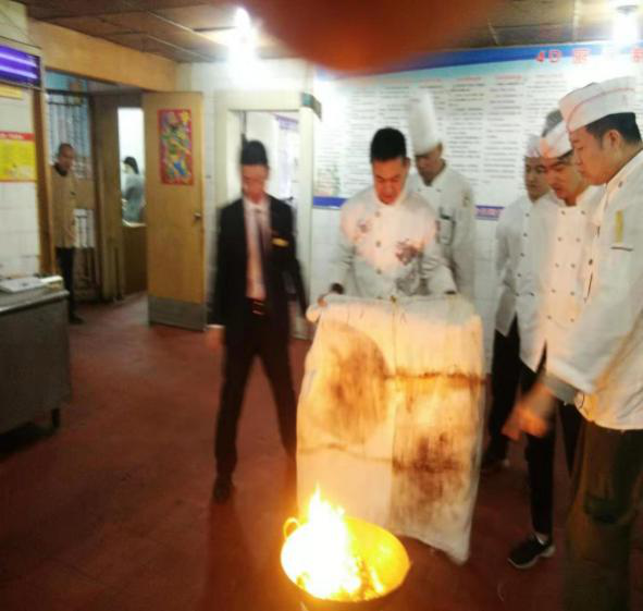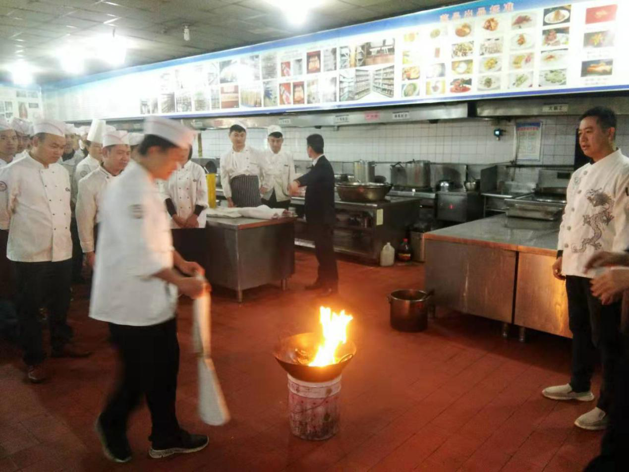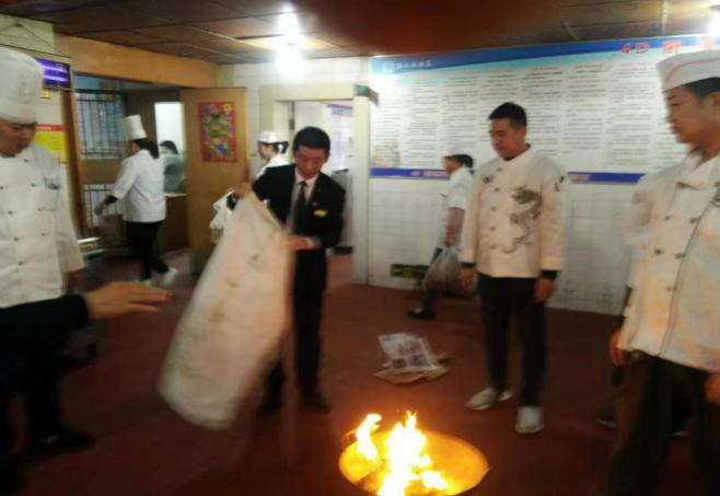 首先由督查安監(jiān)部主管對員工進(jìn)行廚房的油、電、氣的正確使用進(jìn)行詳細(xì)的講演,對工作中可能出現(xiàn)的突發(fā)事故進(jìn)行了詳細(xì)分析;然后針對可能發(fā)生著火事故的燃?xì)庑孤?、油鍋起火后正確滅火的使用方法進(jìn)行了實(shí)戰(zhàn)演練,通過學(xué)習(xí)使全體員工熟練掌握了滅火毯及滅火器的正確使用方法。