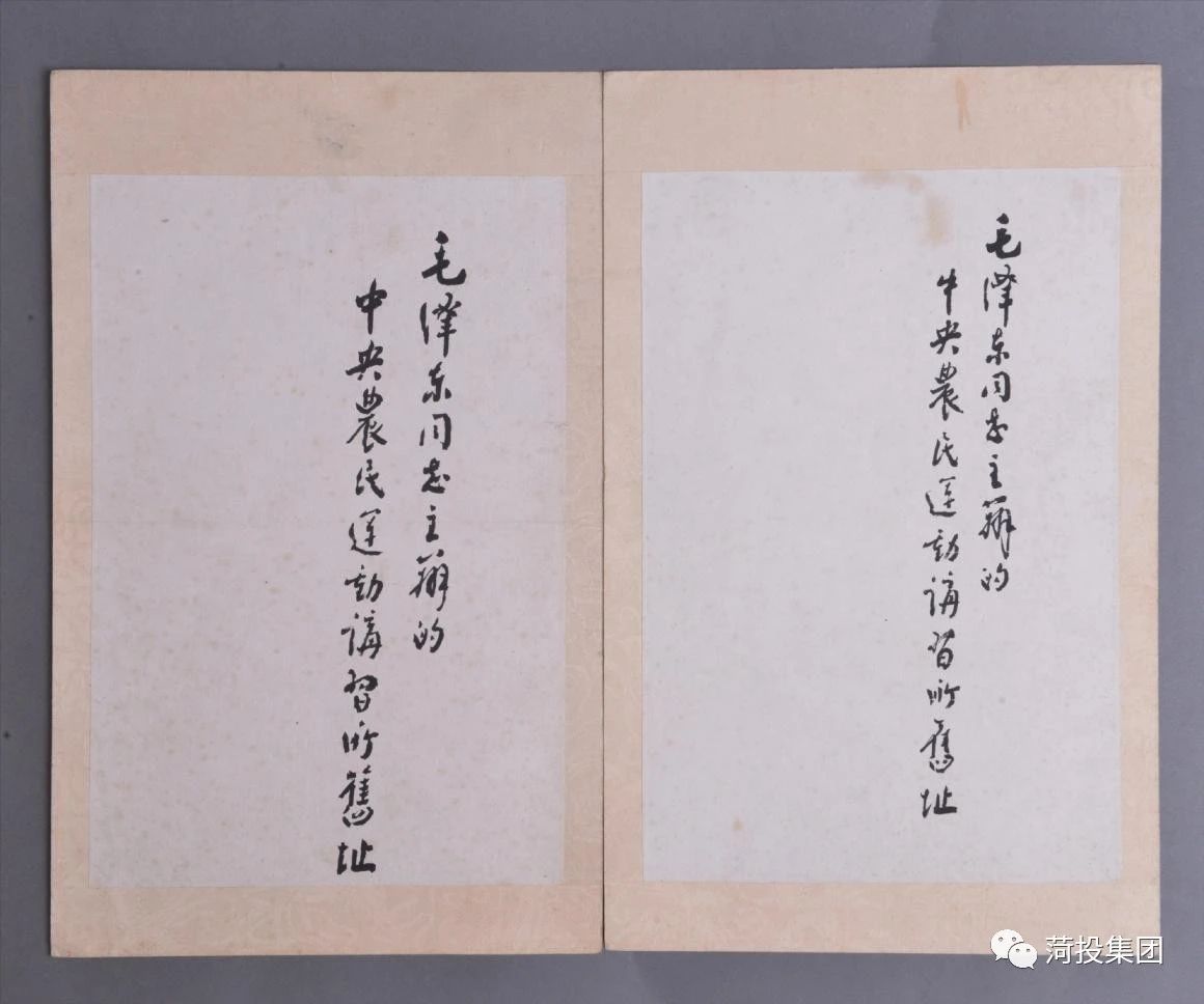 此題字為紙質(zhì),縱27.3厘米,橫18.1厘米,豎排二行,內(nèi)容為:“毛澤東同志主辦的中央農(nóng)民運動講習所舊址。”