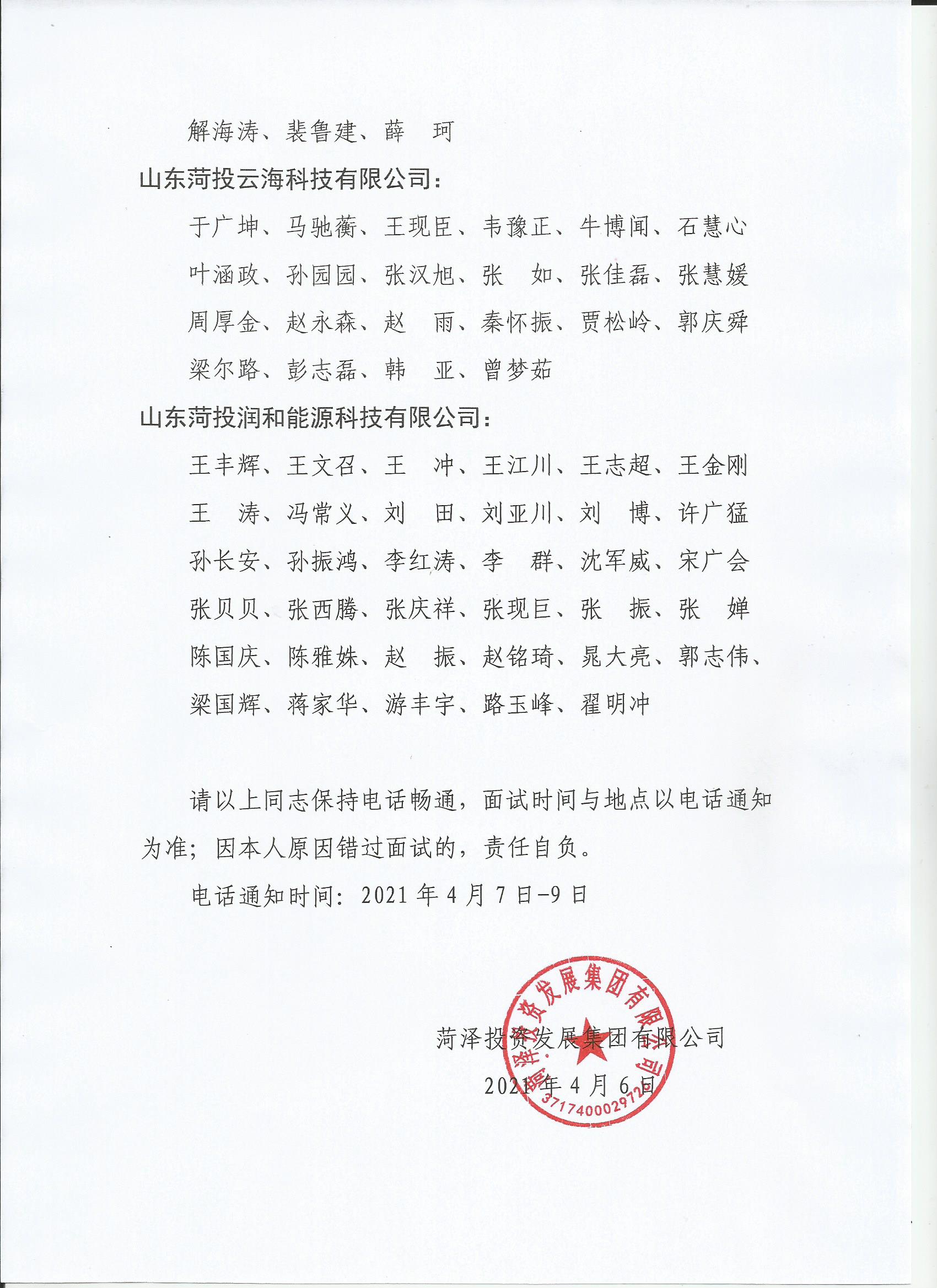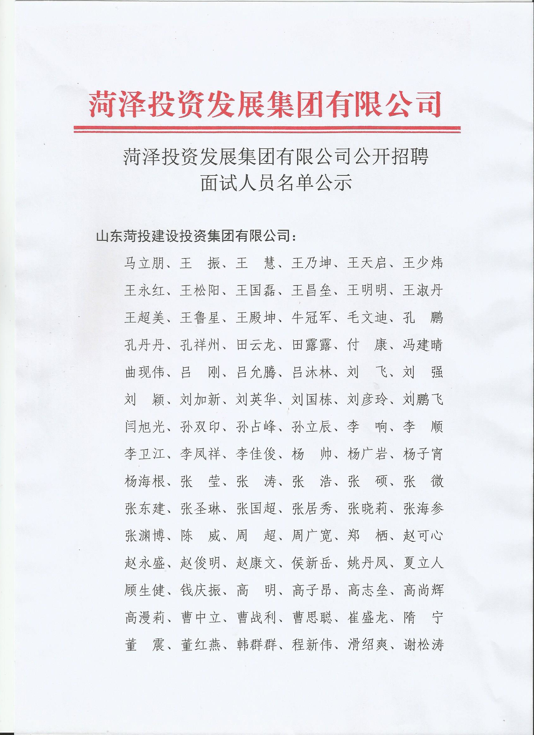 菏澤投資發(fā)展集團(tuán)有限公司公開(kāi)招聘面試人員名單公示