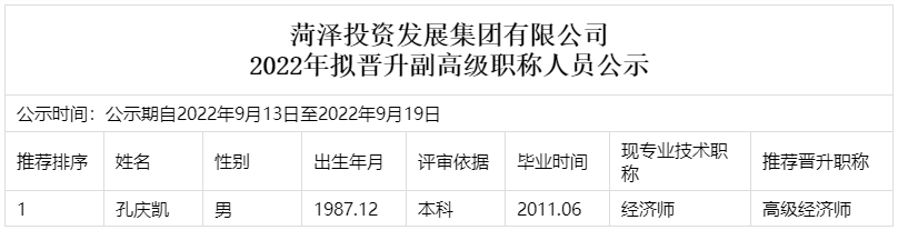 菏澤投資發(fā)展集團(tuán)有限公司2022年擬晉升副高級(jí)職稱(chēng)人員公示