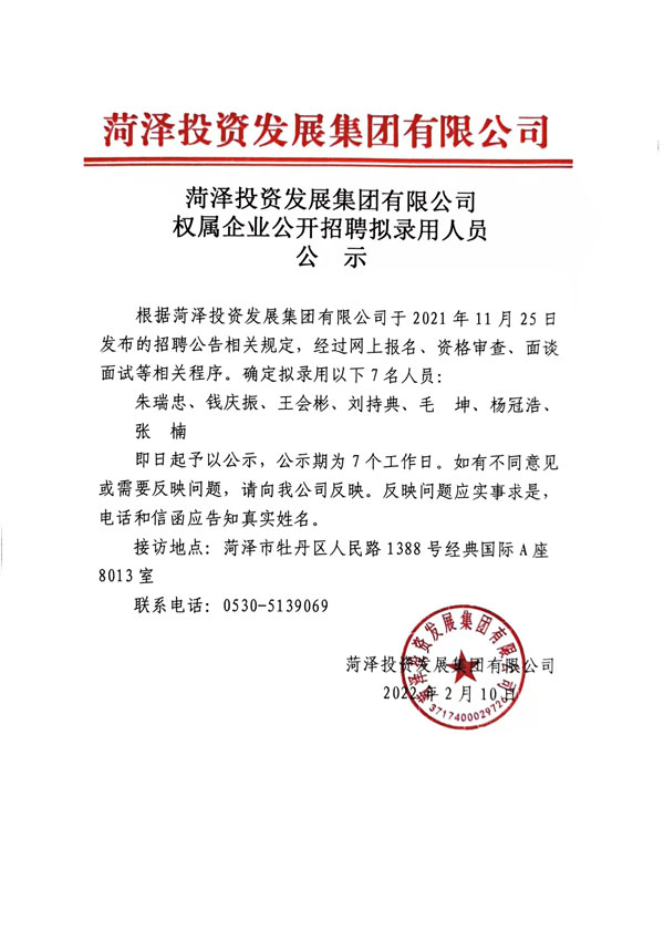 菏澤投資發(fā)展集團(tuán)有限公司關(guān)于公開(kāi)招聘資本...發(fā)布時(shí)間:2021-05-07